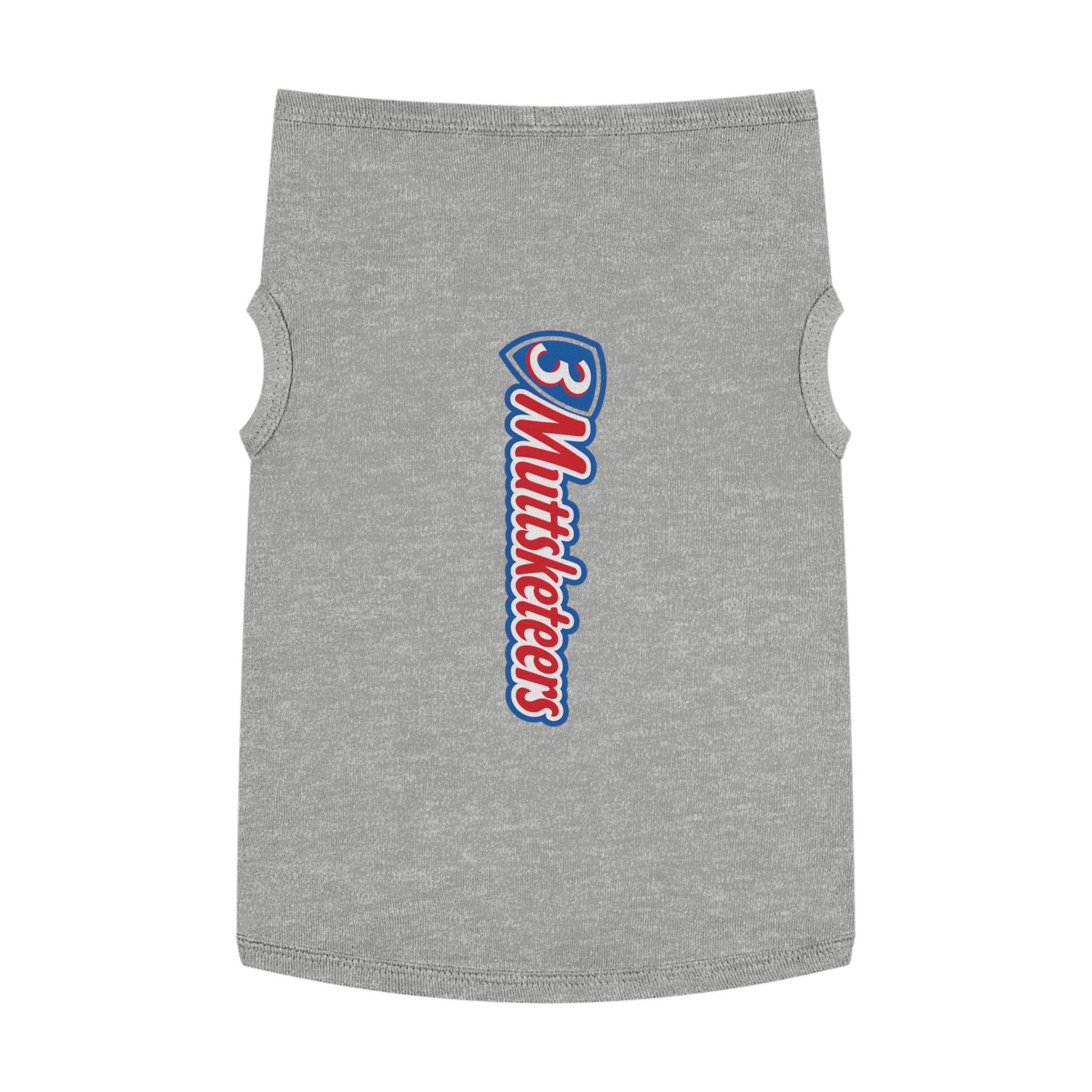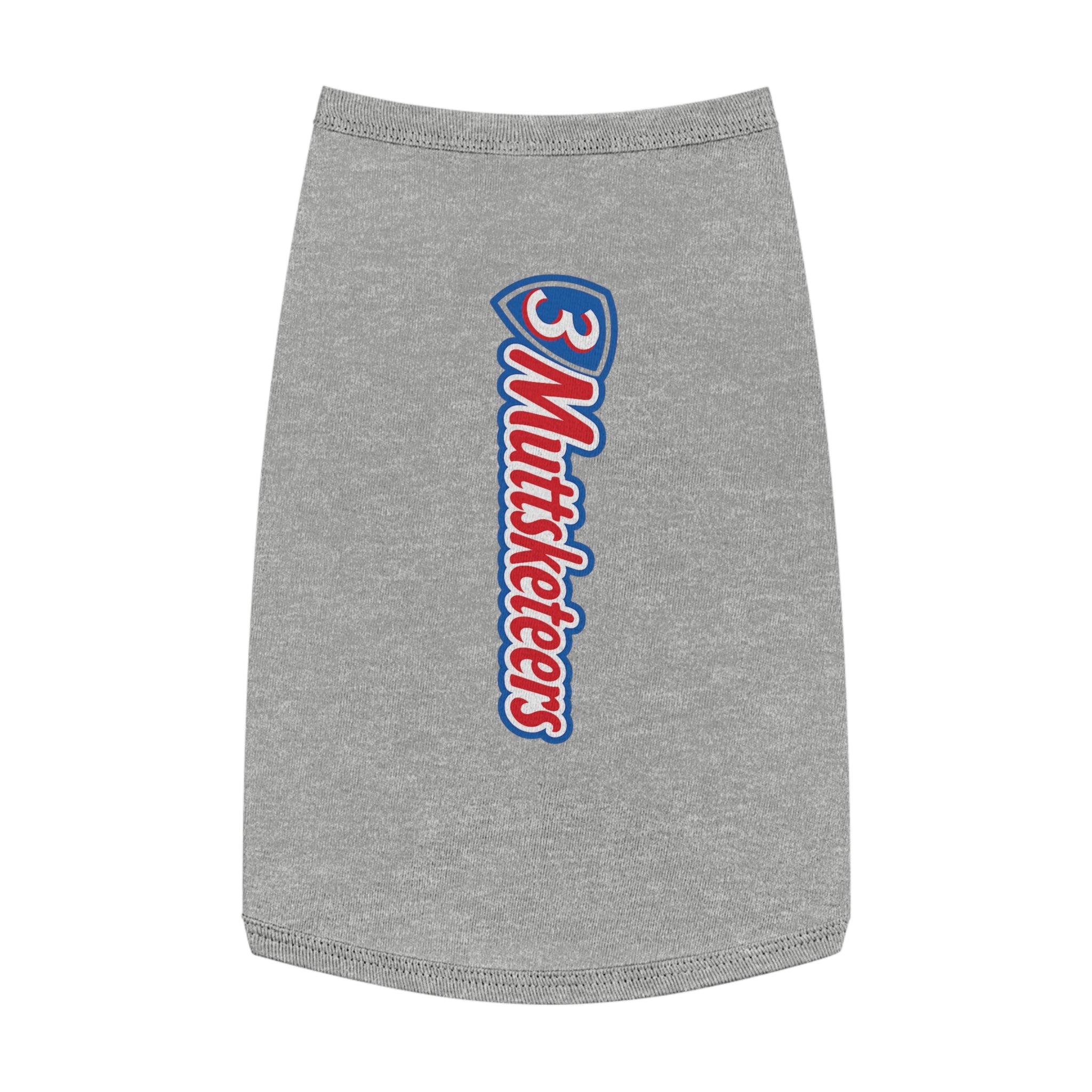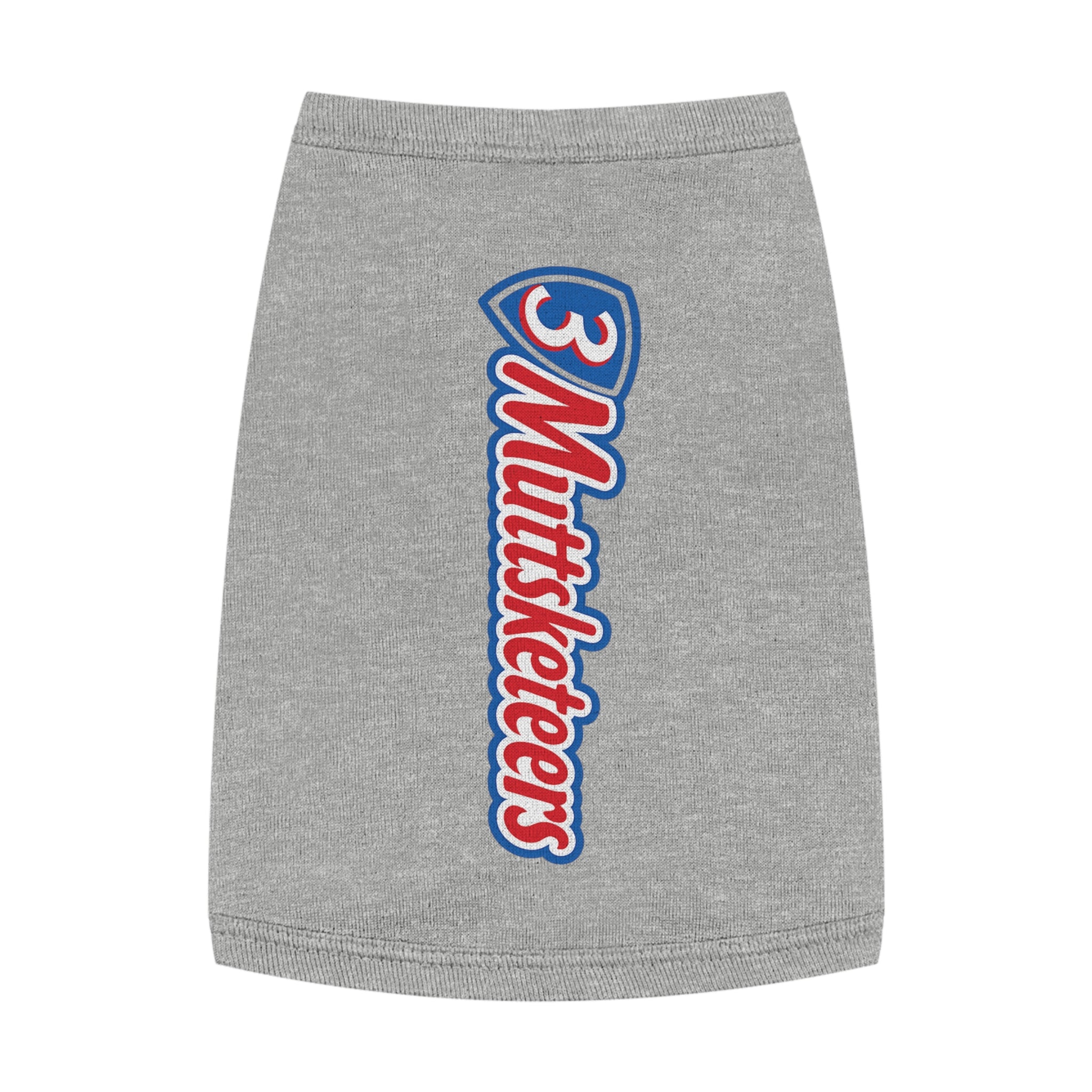 One bark. One bond. One bone. The 3 Muttsketeers dog shirt brings heroic flair to your furry trio with a delightful twist on the classic candy bar.