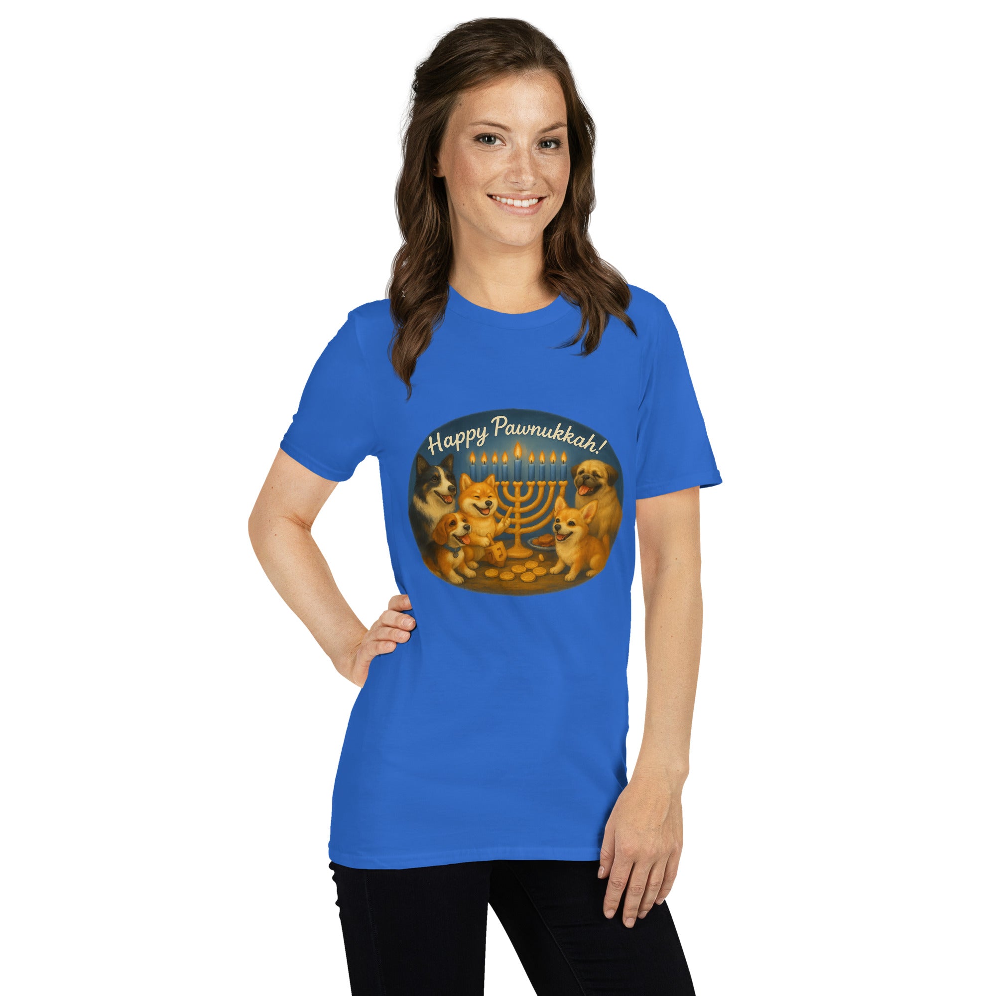 Celebrate eight nights of snuggles, snacks, and slightly stolen latkes. This joyful design brings the bark to the Festival of Lights.