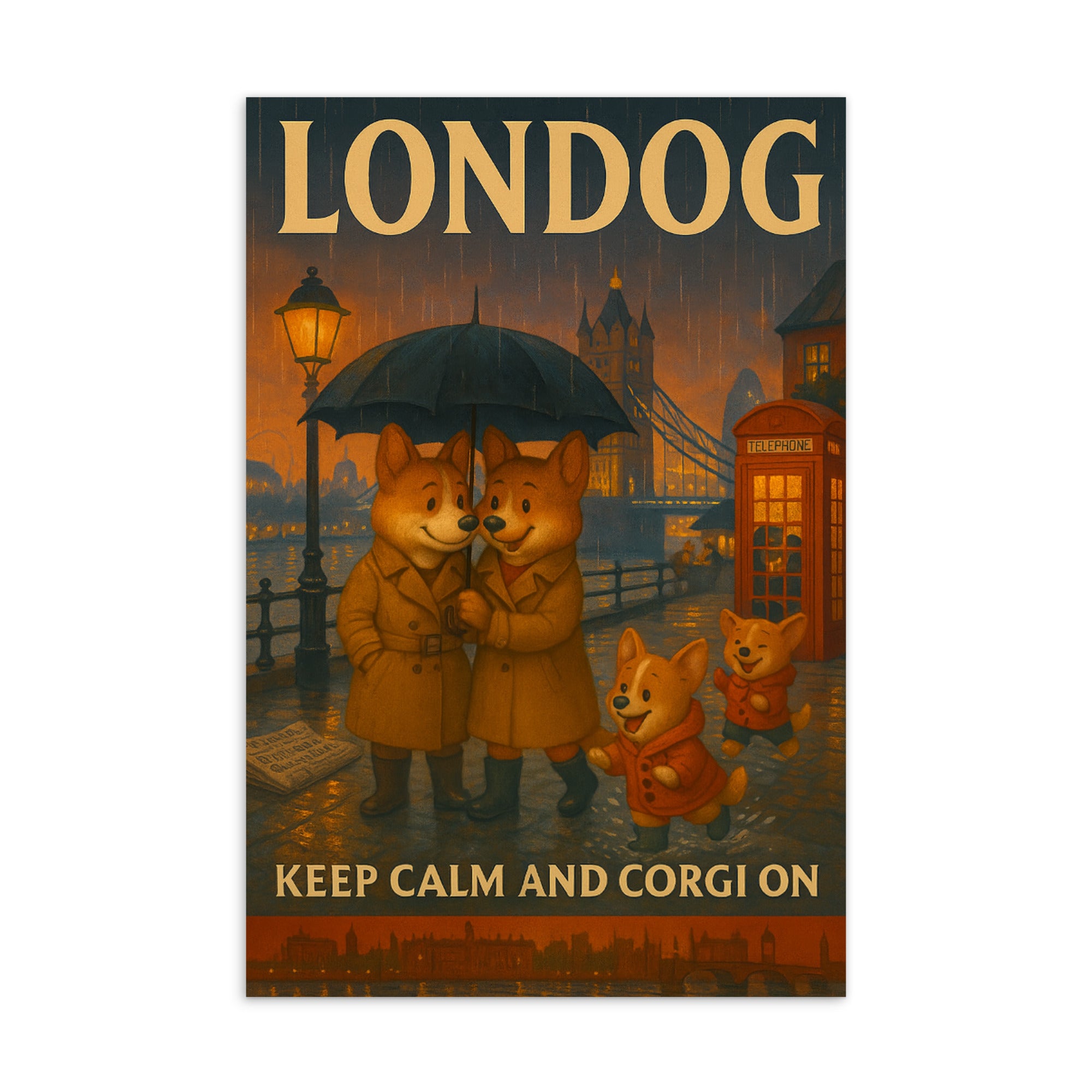 This London-inspired 4x6 postcard celebrates the classic sights and rainy-day spirit of the city—through the eyes of its four-legged locals. From foggy parks to cobblestone streets, Londog captures the essence of Britain’s capital with a wag and a wink.