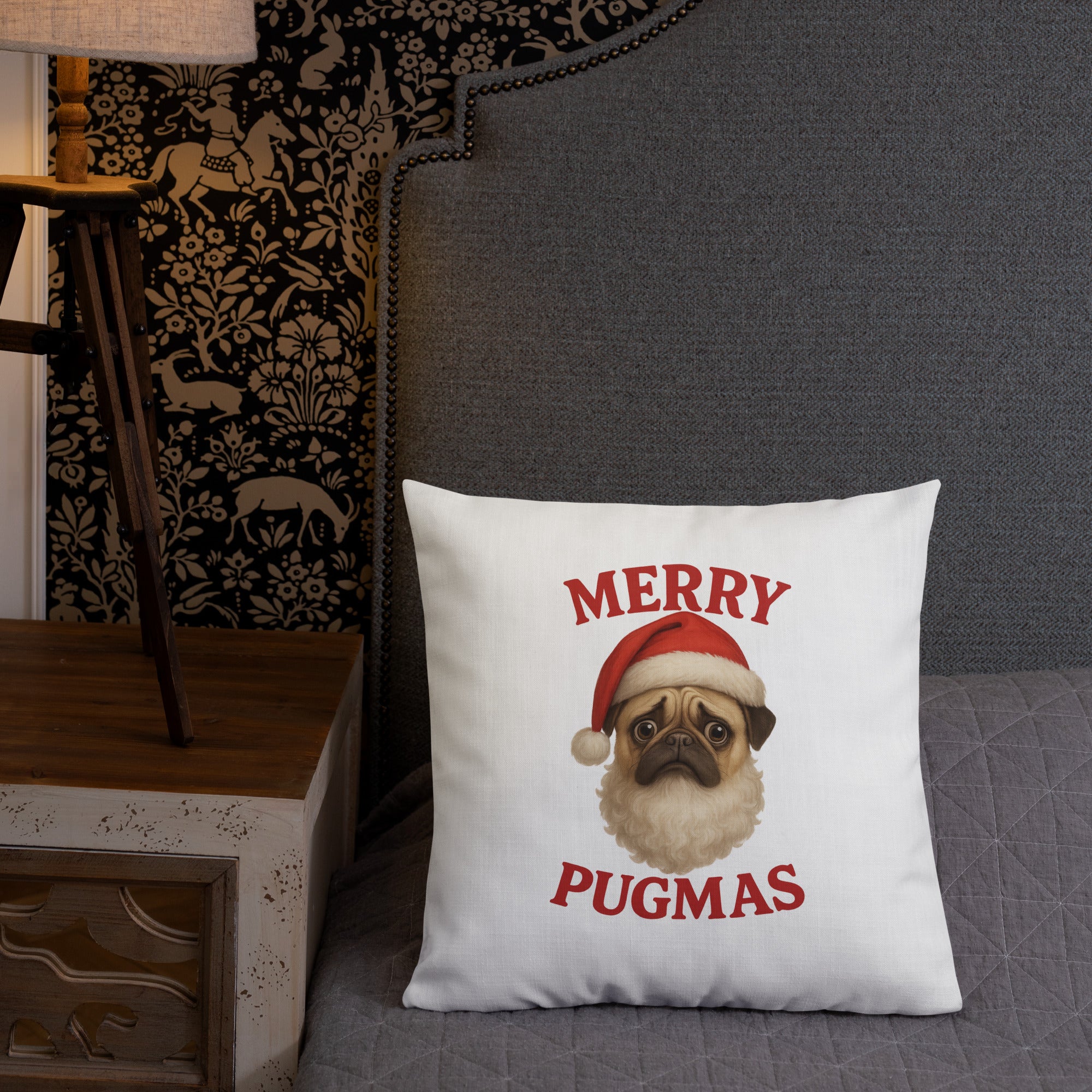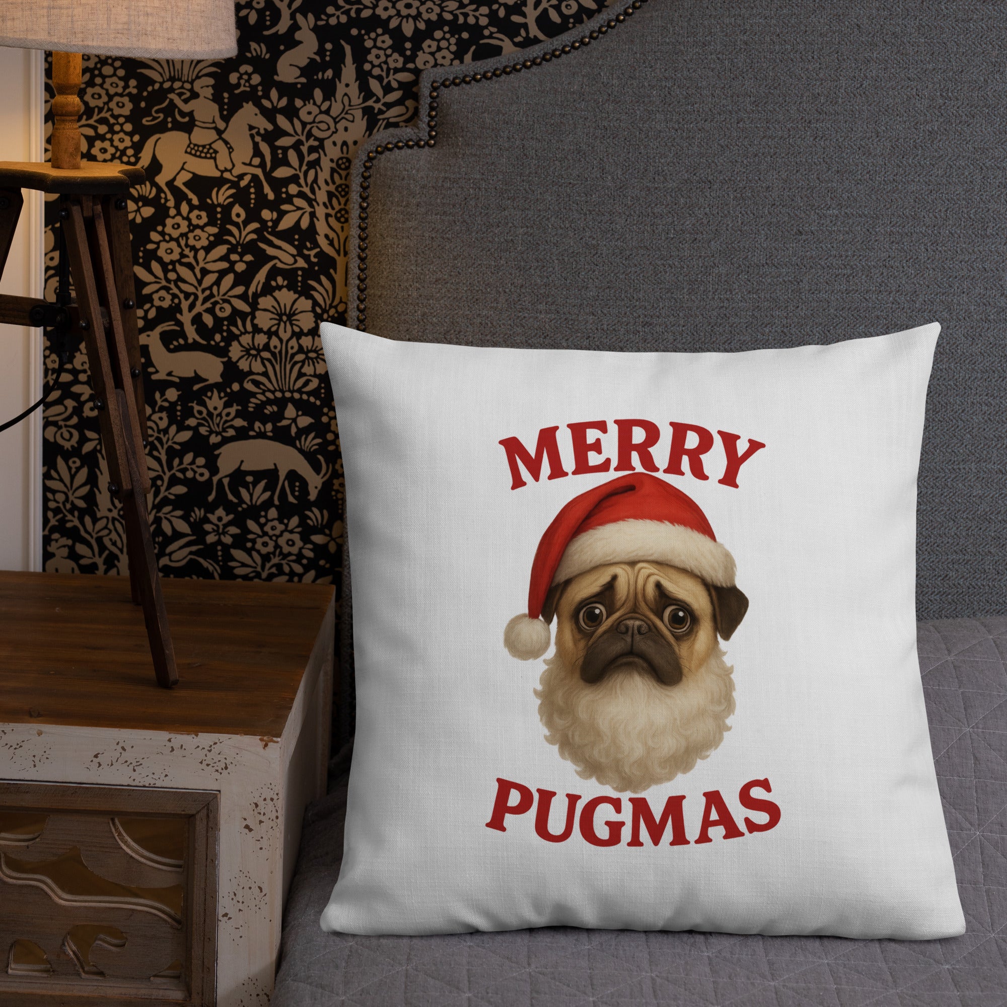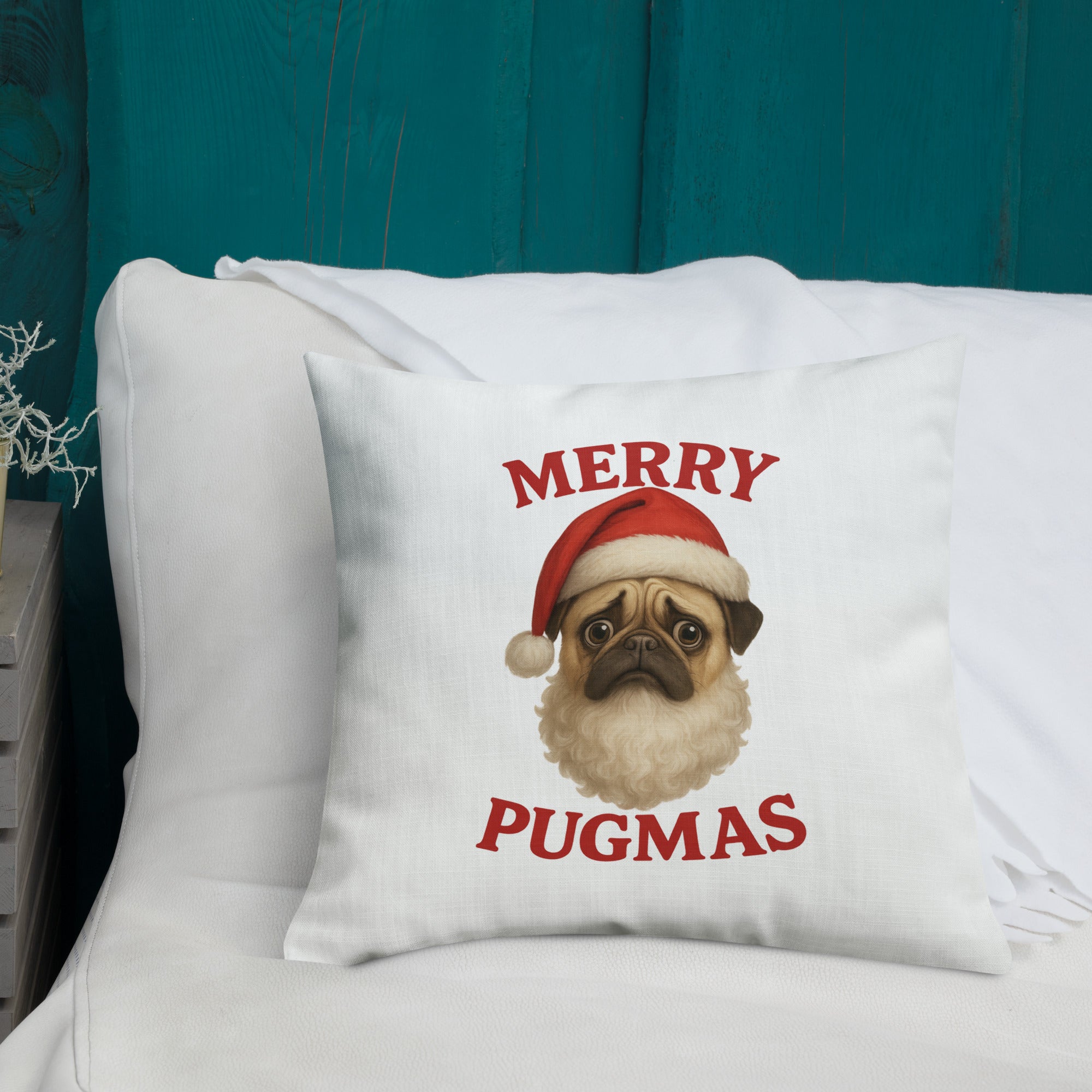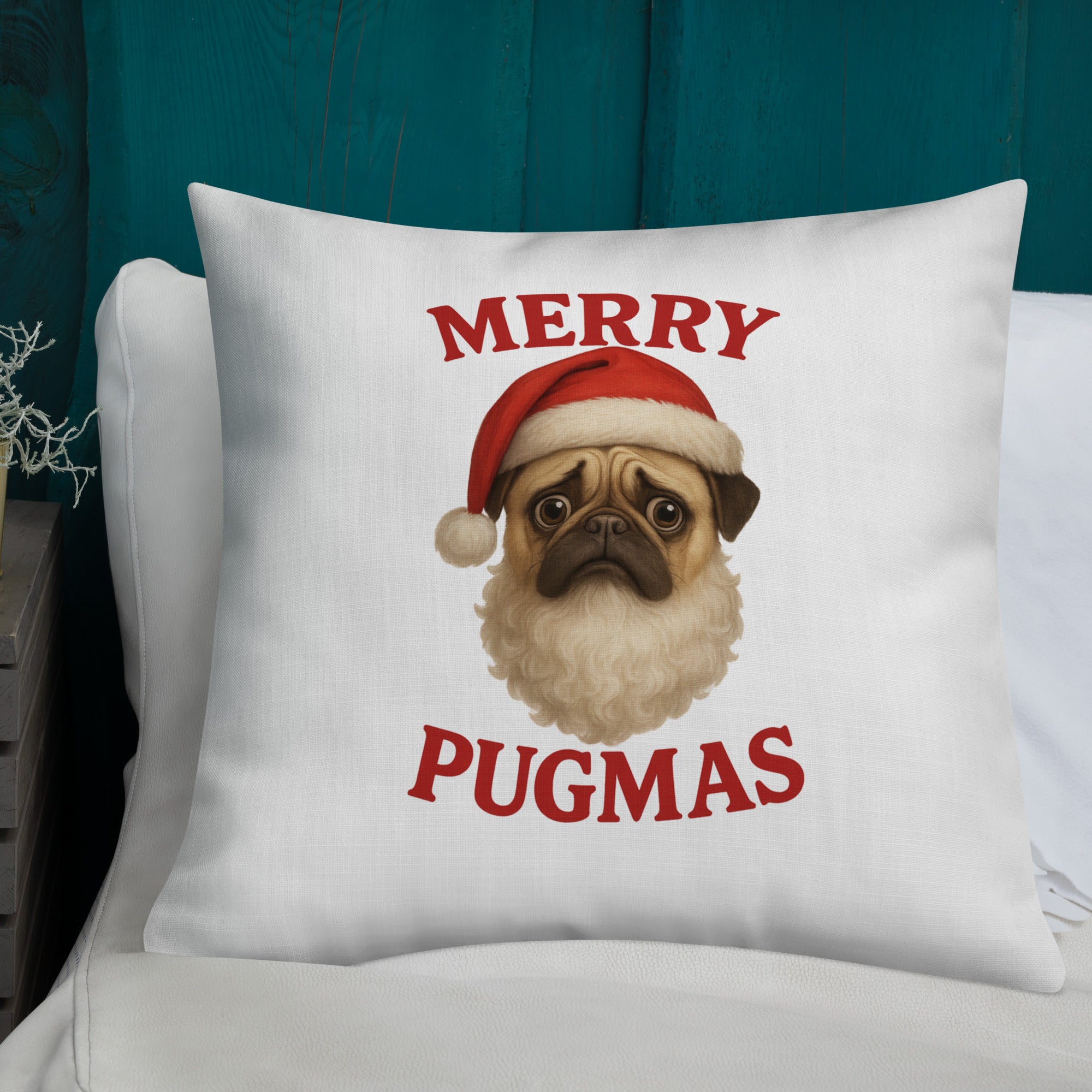 Snuggle into the holidays with the squishy-faced joy of this Merry Pugmas Ppillow, featuring everyone's favorite wrinkly Santa-in-training. It’s festive. It’s fuzzy. It’s 100% Pug.