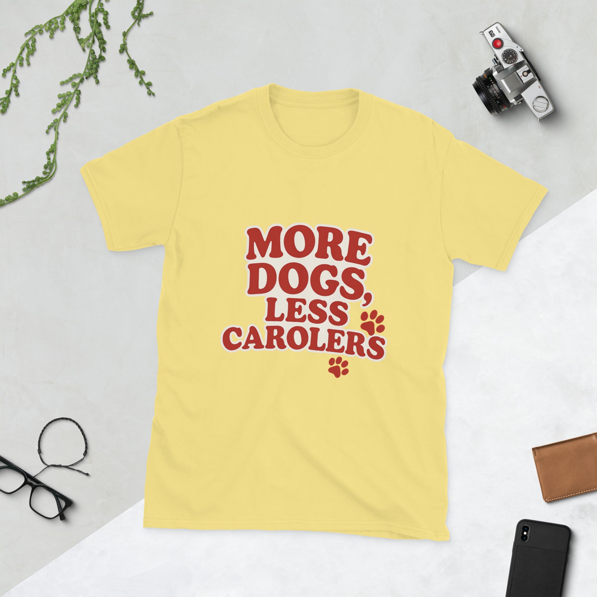 More Dogs, Less Carolers Short-Sleeve Unisex T-Shirt -- Funny Christmas Shirt for Dog Lovers